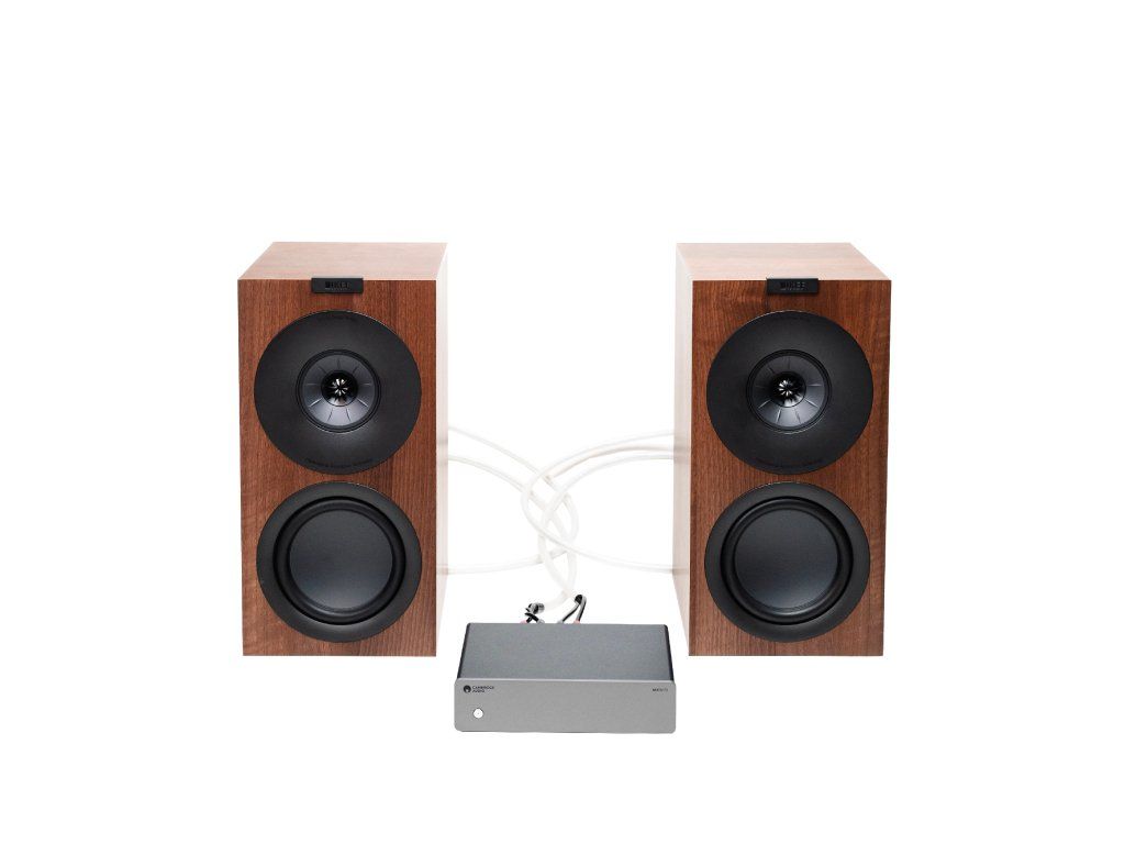 KEF Q Concerto Meta s oddělenou dvojicí Cambridge Audio MXN10 (streamer) a MXW70 (koncový zesilovač).
