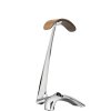 Sochařsky tvarovaný z masivní slitiny s matným černým nebo chromovaným povrchem, doplněný o hlavovou opěrku z veganské kůže nebo ořechového dřeva. Elegantní skládací „ploutev“ pro snadné uložení kabelu a silikonové podložky chránící povrch nábytku. Ideální doplněk k modelům Meze Elite, Empyrean či 109 Pro.
