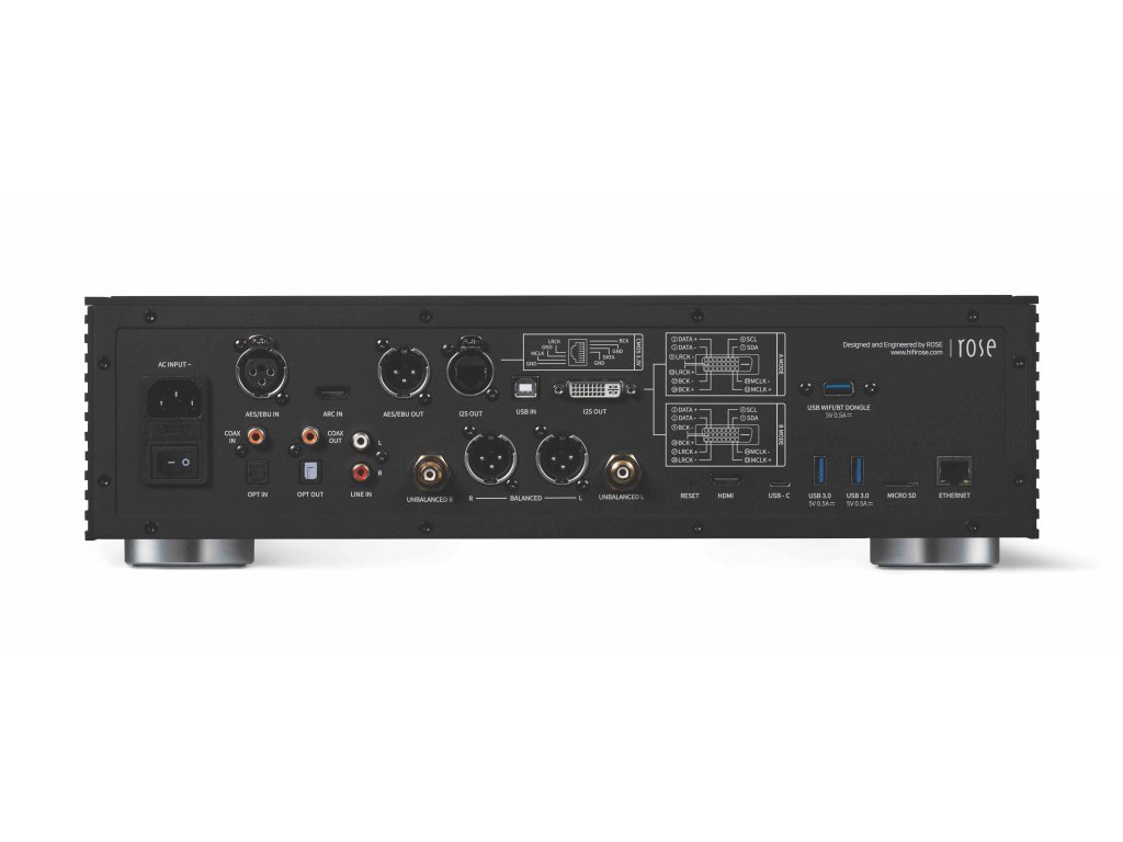 Kombinace špičkového ESS Sabre ES9038PRO DAC s femtosekundovým hodinovým generátorem pro mimořádně detailní a čistý zvuk. Podporuje formáty až do 32bit/768kHz PCM a DSD512, včetně MQA dekódování. Díky 14,9” dotykovému IPS displeji a systému Rose OS nabízí intuitivní ovládání a přístup ke streamovacím službám jako Tidal, Qobuz, Spotify či RoseTube.